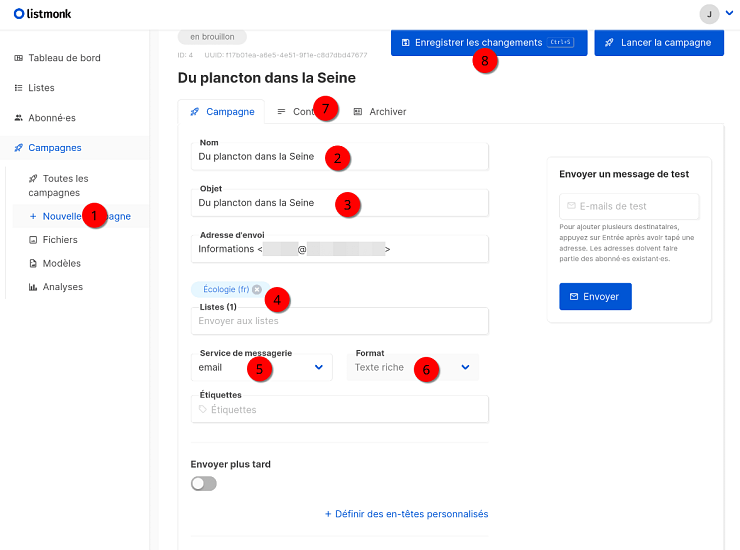 - Au fur et à mesure de l’édition de votre campagne, n’hésitez pas à enregistrer votre travail.