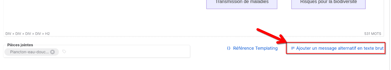 Si vous apportez des corrections à votre article, il faudra supprimer le message alternatif en texte brut, puis à nouveau ajouter un message alternatif en texte brut.